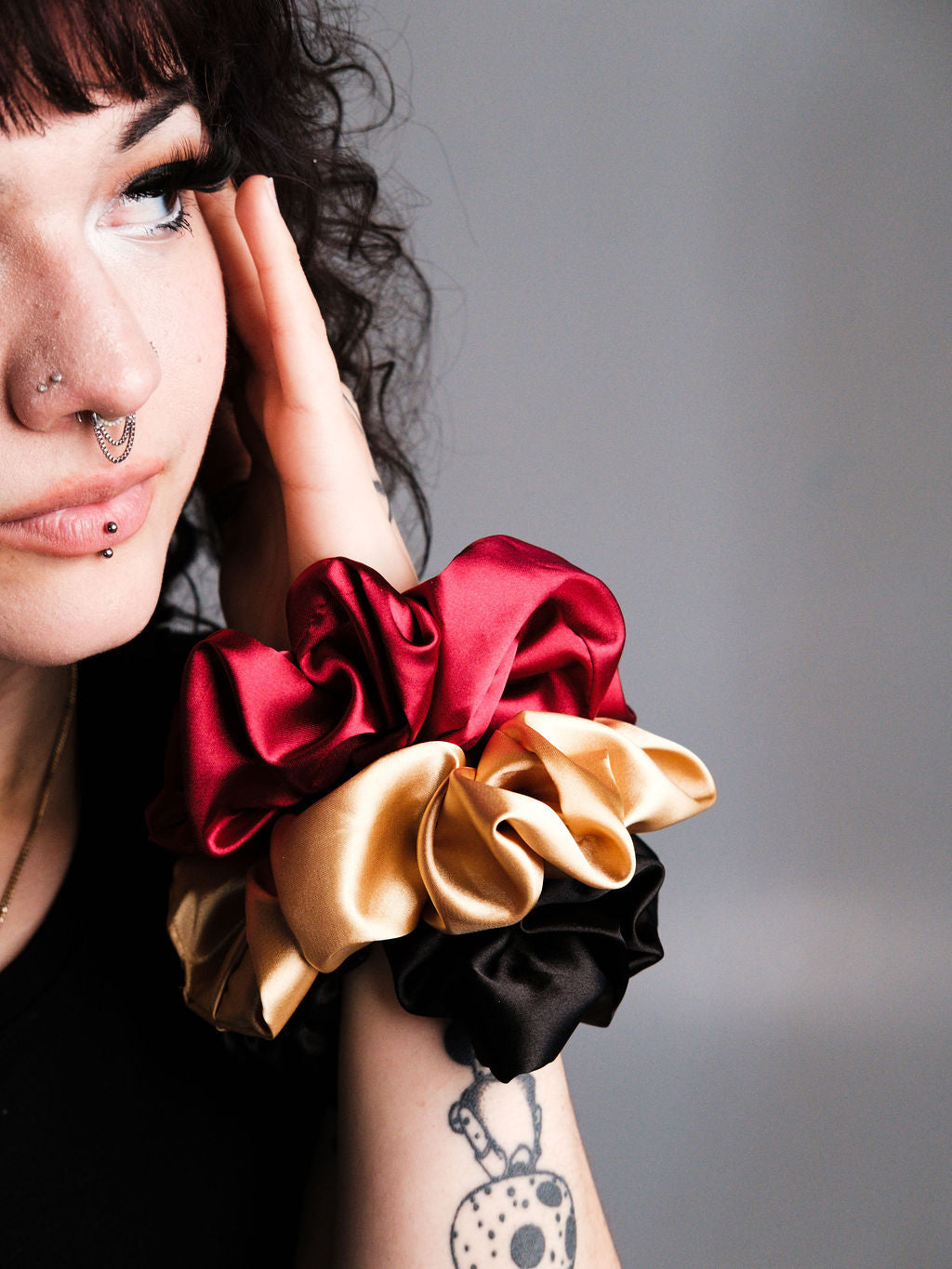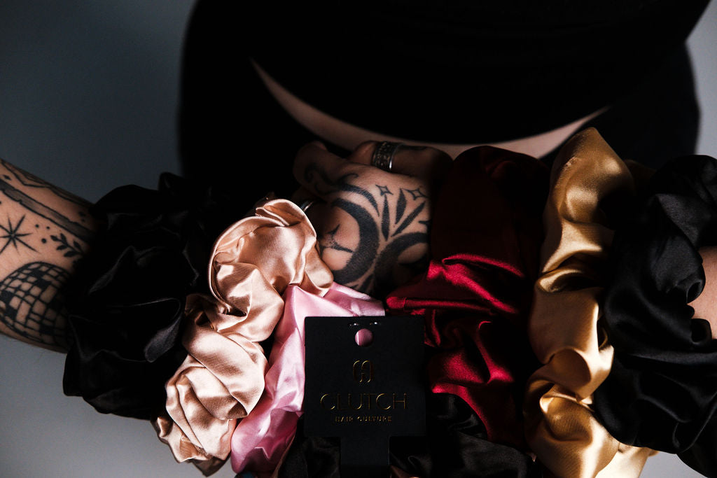 Introducing our Clutch Hair Culture Scrunchies – the ultimate trend in haircare! These luxurious scrunchies, perfect for both day and night, are made from premium satin to keep your hair secure without causing damage.